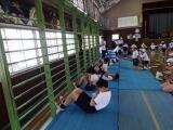 次に、卓球マシンから打ち出されるボールにラケットを当てるコーナーと2チームでラリーを続けるコーナーに分かれて練習しました。講師の先生にやさしくアドバイスしてもらって、どんどんうまく当たるようになりました。