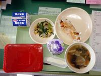 ごはん ぎゅうにゅう さけのちゃんちゃんやき おひたし おぞうに きょほうゼリー