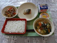 ごはん ぎゅうにゅう いわしのかばやき いそかあえ けんちんじる ふくまめ