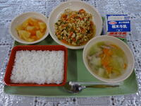 ごはん ぎゅうにゅう ガパオライスのぐ かくぎりやさいスープ アセロラジュレポンチ