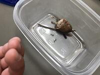 昨日 卵を見つけたので、虫かごに入れておいたら、昨夜のうちに卵からかえったようです。今日は早速、飼い方を調べるそうです