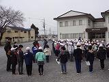 教室での集会が終わった地区から、校庭に集合して新しい班で分団ごとに下校しました。