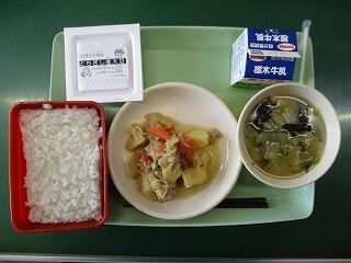 〈メニュー〉ごはん 牛乳 肉じゃが 麦納豆 白菜の味噌汁