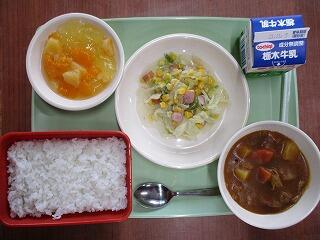 〈メニュー〉ごはん 牛乳 ポークカレー キャベツとコーンのソテー レモンのジュレポンチ