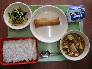 〈メニュー〉ごはん 牛乳 マーボー豆腐 春巻き 中華和え