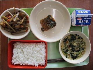 ごはん 牛乳 さばの味噌煮 かき玉汁 五目金平