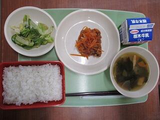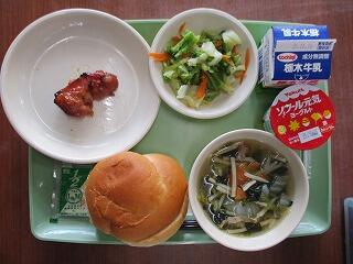 〈メニュー〉ごはん 牛乳 モロのオーロラソースかけ 大根とわかめの味噌汁 和風サラダ
