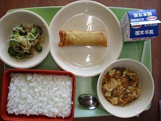 〈メニュー〉ごはん 牛乳 春巻き マーボー豆腐 キムチあえ