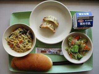 〈メニュー〉ミニコッペパン キャラメルクリーム 牛乳 ギョウザ 味噌ラーメン ゆで野菜サラダ