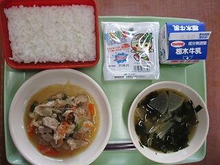 〈メニュー〉ごはん 牛乳 ぶたにくのスタミナいため 大根とわかめの味噌汁 冷ややっこ