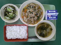 【栃木農業高校コラボメニュー】ごはん ぎゅうにゅう ぶたにくのスタミナいため こんぶづけ だいこんとわかめのみそしる