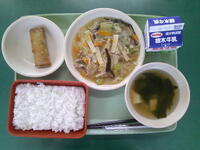 ごはん ぎゅうにゅう ちゅうかどんのぐ はるまき わかめスープ