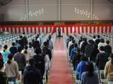 姿勢良く構えができたところで、いよいよ「別れのことば」の呼びかけです。体育館に響く声を出せる子、緊張して声がうまく出せない子もいますが、集中して一つのことに取り組む姿が見られました。これから何度も練習して、自信をもってできるようになると思います。