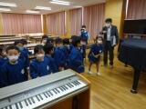 園児の皆さんは、3つの班に分かれて校内を見学しました。音楽室では、いろいろな楽器に驚きました。図工室や理科室では、見たことがないものがたくさんあって興味をもちました。図書室では、読んでみたいという声が出ました。体育館では4年生がマット運動しているのを見て「すごい。」と言ってくれました。