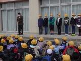 はじめに、全体で出発式の練習をしました。司会の子どもの進行に合わせて、挨拶や礼の指導をしました。練習とはいえ、しだいに姿勢がよくなり、真剣さが出てきました。