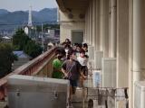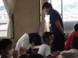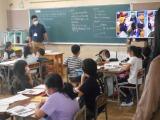 3年生の学級に突然不審者が侵入してきた場面から始まりました。もちろん子どもたちが怖がらないように事前に学級で自己紹介をしてありました。担任の先生が、相手を興奮させないように対応しながら、子どもたちに避難するように声をかけました。子どもたちは安全なベランダを通って、離れた学級に避難しました。