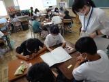 1年生は、文の中からかたかなを見付けて、書き方を練習できました。モニタに映した文のところで自分が見付けたかたかなを笑顔で発表できました。