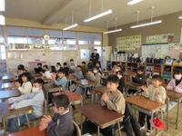 続いて、校長先生のお話です。校長先生からはお正月に関わるお話やありがとうがあふれる大宮北小学校にしていきましょう、といったお話がありました。児童たちは背筋を伸ばして真剣に聞きながら、校長先生の問いかけにも元気に答えていました。