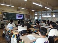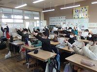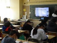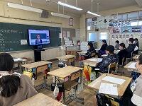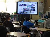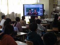 大宮北小では、NIEルームに保健委員、そして6年生の各教室にはそれ以外の児童が集まり、スクリーンや大型テレビを通して、他校との交流をしながら参加しました