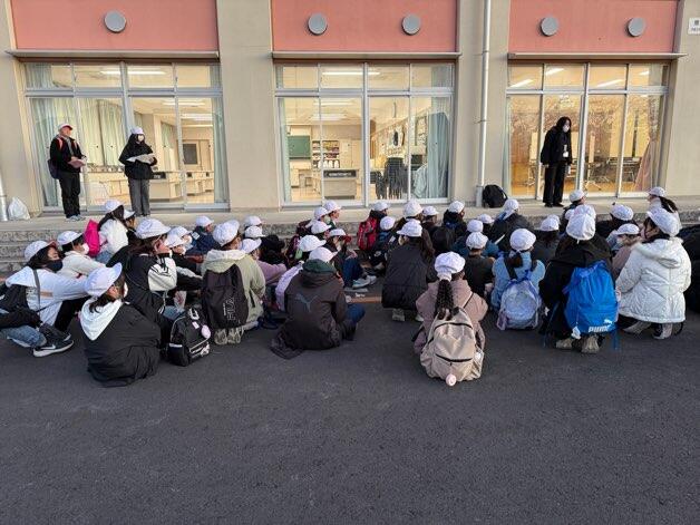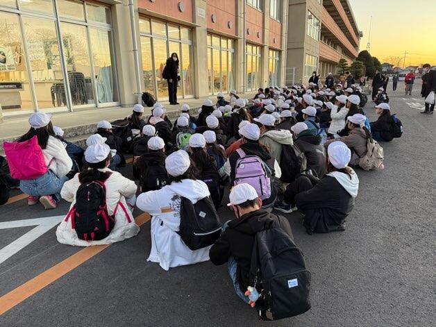 6年生が、小学校最後の校外学習に出かけました朝早い集合時刻だったので、まだ真ん丸なお月様が出ているころに目覚めて準備してきた子どもたち。一段と冷え込んだ朝・・・登校したときは、元気いっぱいの子や、眠そうな目をこすっている子もいましたが・・・堂々と出発式を行って、予定どおり貸し切りバス4台で出発しました