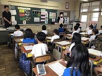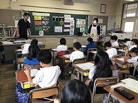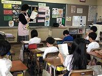 アンケート結果をグラフや表で表して説明したり、絵やキーワードを黒板や大型テレビで示したりしながら、とても分かりやすい内容で、子どもたちは、よく理解できた様子でした