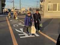 白い息を吐きながら、大きな荷物を抱えて、歩いて登校する子どもたち・・・