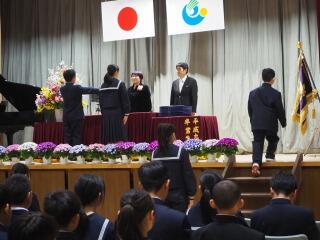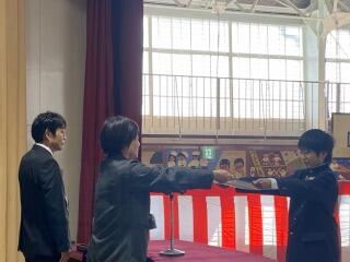 卒業生一人ひとりが壇上に上がり、校長先生から卒業証書を受け取る姿は、これまでの努力と成長の軌跡そのものでした。 保護者の皆様、地域の皆様に見守られながら、卒業生たちは胸を張り、新たな一歩を踏み出す決意をしっかりと心に刻んでいました。式の中では、在校生からの温かいメッセージや、卒業生による力強い「別れの言葉」が会場に響き渡り、これまでの学校生活の思い出が鮮やかによみがえるようでした。