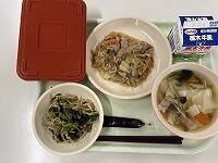 今日 は、ふるさとメニューで、栃木市産 の豚肉 を使 ったみそ炒 めです。豚肉 には、わたしたちの体 をつくるたんぱく質 やビタミンB1が多 く含 まれています。豚肉 のビタミンB1は、体 の疲労回復 やイライラを防 ぐ働 きがあります。栃木市産 の豚肉 を食 べて元気 な体 をつくりましょう。