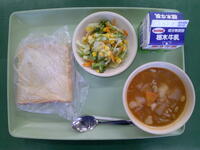 シュガートースト ぎゅうにゅう ゆでやさいサラダ ポークビーンズ