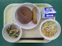 ミニくろパン ぎゅうにゅう みそラーメン はるまき くきわかめサラダ
