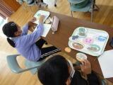 はじめに、いろいろな食べ物のカードから、1食分の組み合わせを考えて選びます。次に、主食、主菜、副菜や栄養とその働きを学習しました。自分の選んだ食べ物を3つのグループに分けていくと「バランスがとれている。」「緑の副菜が足りないな。」「次は、ちゃんと選びたい。」という声が聞こえました。