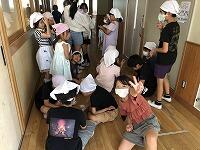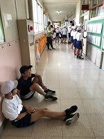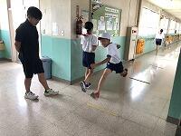 【陸上練習】最初は校庭での練習をおこないましたが、朝から気温が上昇し、23日(火)の練習時に、体調不良者が出てしまったため、室内での練習に切り替えました。普段は「走ってはいけない廊下」を、思う存分走ってトレーニング汗・焦る休憩と水分補給をこまめにしながら練習していますピース