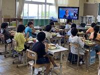 情報処理・パソコン給食の時間に、主幹教諭の先生が、いろどり教室からの中継をおこないました。