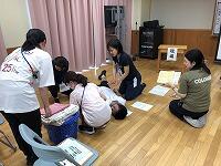 傷病者発生時対応訓練…グループに分かれて、2場面について簡単にシミュレーションを行い、カードを用いて役割演技をしました