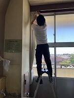 先日は、カーテンをクリーニングに出す(今年度は3階の番です)ために、取り外しをしました。