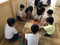 今日は午前中は雲が多めで小雨がパラついていたので、外での活動もできましたが、子どもたちは汗びっしょりです