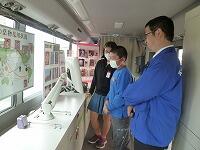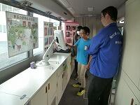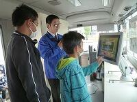 車内にあるパソコンを使って、薬物乱用に関するクイズに挑戦してもらいました。