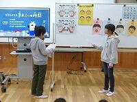 1年生の教室での「あいうべ体操」の様子朝の会、帰りの会でやっているクラスが多く、元気な「あいうべー」の声が聞こえてきます。