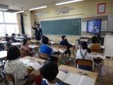 5年生は、学級によって内容は異なる国語の授業でした。春の風景をイメージして、自分の中にある言葉を引き出していました。また、漢字の成り立ちについて、動画教材を見ながら楽しく学んでいました。