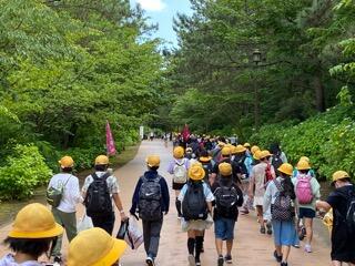 1年生が学年で、学校近くの丸沼・長瀞公園を見学に行きました。今日は、水が流れていなかったので少し残念そうでしたが、逆に周りの自然に目が向いたようです。アジサイなどの草花に興味をもったり、お互いに知っていることを伝え合ったりする姿が見られました。