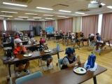 感染症予防のため、食べるときは別室で前向きになって食べました。5年生にとっては初めての調理実習でしたが、栄養教諭の先生や複数の先生方、地域のボランティアの方々のおかげで、とてもスムーズに行うことができました。(写真は、1~4組の学習の様子です。)