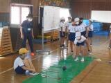 はじめに、ペタンクをしました。1チーム3名で一人ずつボールを投げて、コーンの一番近くにあるボールのチームが勝つゲームでした。力の加減が難しいけれど、何度もがんばっていました。