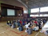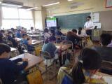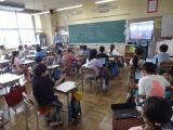 5年生は、体育館を使って学年合同で総合的な学習の時間を実施しました。11月に予定している臨海自然教室について説明を聞いたり、クイズに挑戦したりしました。とちぎ海浜自然の家で活動するグループで協力してゲームをすることで、お互いを応援することができました。