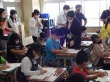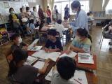 4年生が、総合的な学習の時間で福祉について学習しています。今日は、点字ボランティアすみれの会の皆様により点字体験をしました。