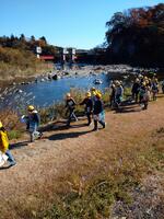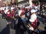 本校からは、3・4年生が参加しました。市に用意していただいたバスで会場近くまで移動し、そこから歩いて会場に行きました。近づくとお囃子が聞こえてきて、子どもたちの気持ちが高まっていました。