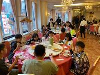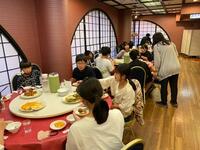 夕飯を食べに横浜中華街にやって来ました。円卓で大皿に盛り付けられた料理を、仲間と上手に取り分けました。