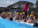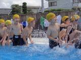 1年生が、小学校のプールに入るのは2回目です。まだ、着替えや準備体操など慣れていないことが多く、しっかりと時間をかけて指導しています。
