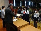 また、予行の後で6年生対象の表彰式を行いました。善行功労、模範児童、健康運動優良などで学校の代表として表彰されたものです。さすが代表となる子どもたち、りっぱな態度で表彰されました。