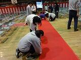 放課後には、先生方が体育館で式場の準備をしました。保護者の席でも証書授与がよく見えるように映写するスクリーンや卒業生が歩く赤絨毯を準備しました。