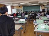 6年3組では、音楽専科の先生に指導を受けています。卒業を迎え、担任の先生に演奏と合唱を贈ろうという授業がありました。